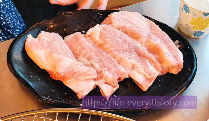 항정살은 쫀득한 맛을 제대로 느낄 수 있었으며 소금에 살짝 찍어먹었을 때 맛있었습니다.