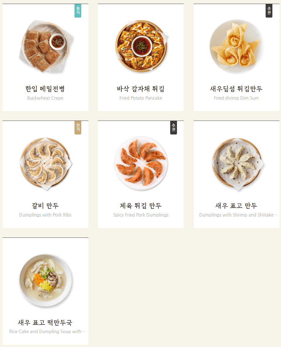 만두 메뉴