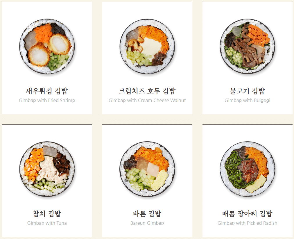 김밥 메뉴