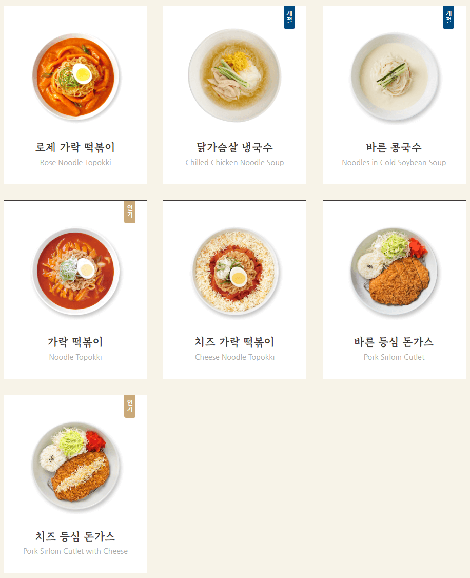 밥과 면 메뉴