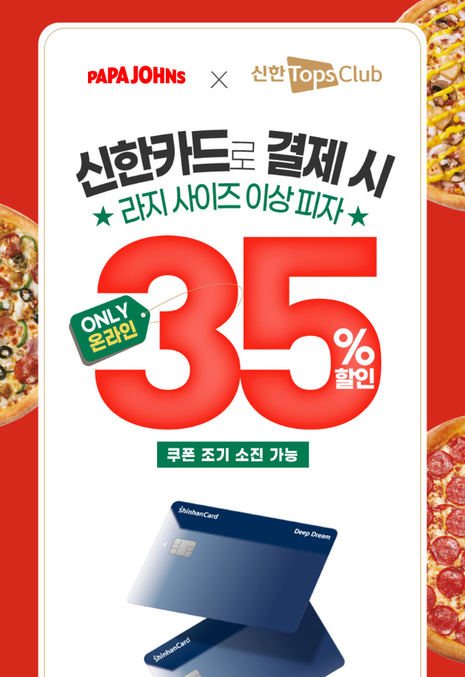 파파존스 35% 할인받는 방법은 신한 Tops Club 과 연계된 이벤트입니다.